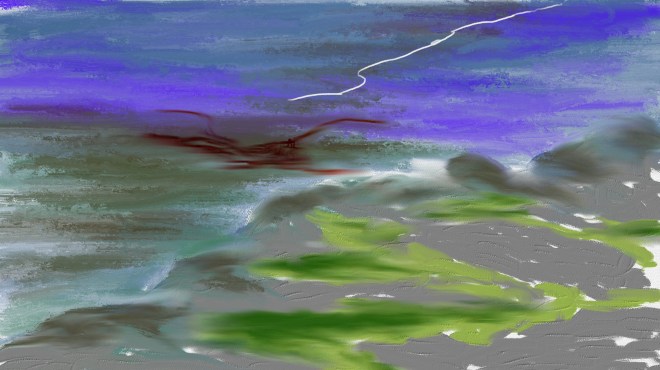 Fierce raged the tempest – iPad painting copyright Andrew Pratt 2022